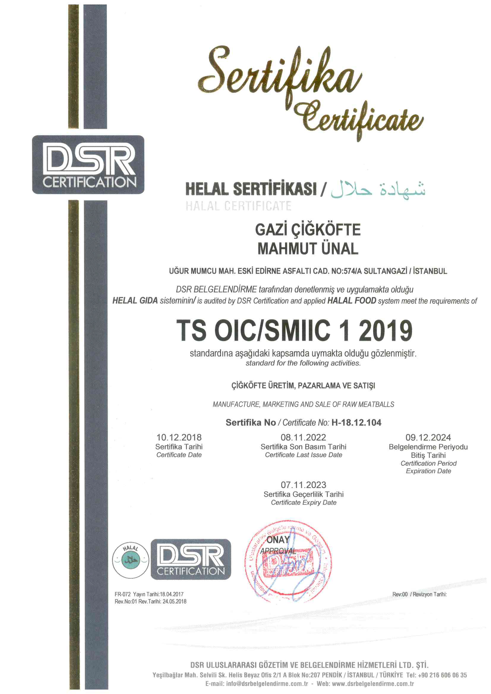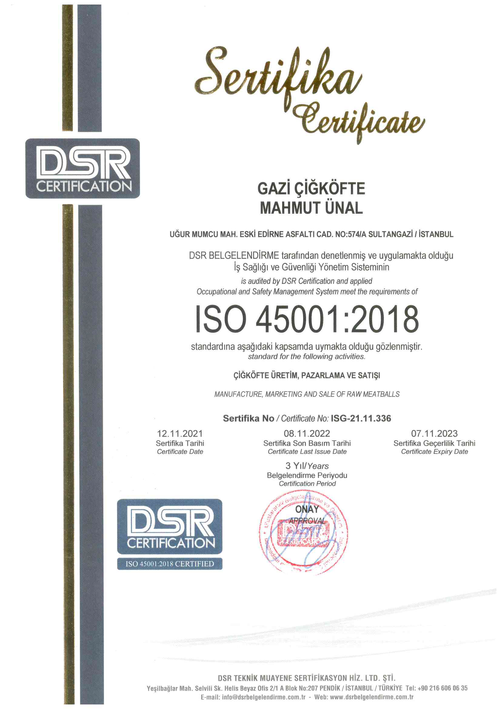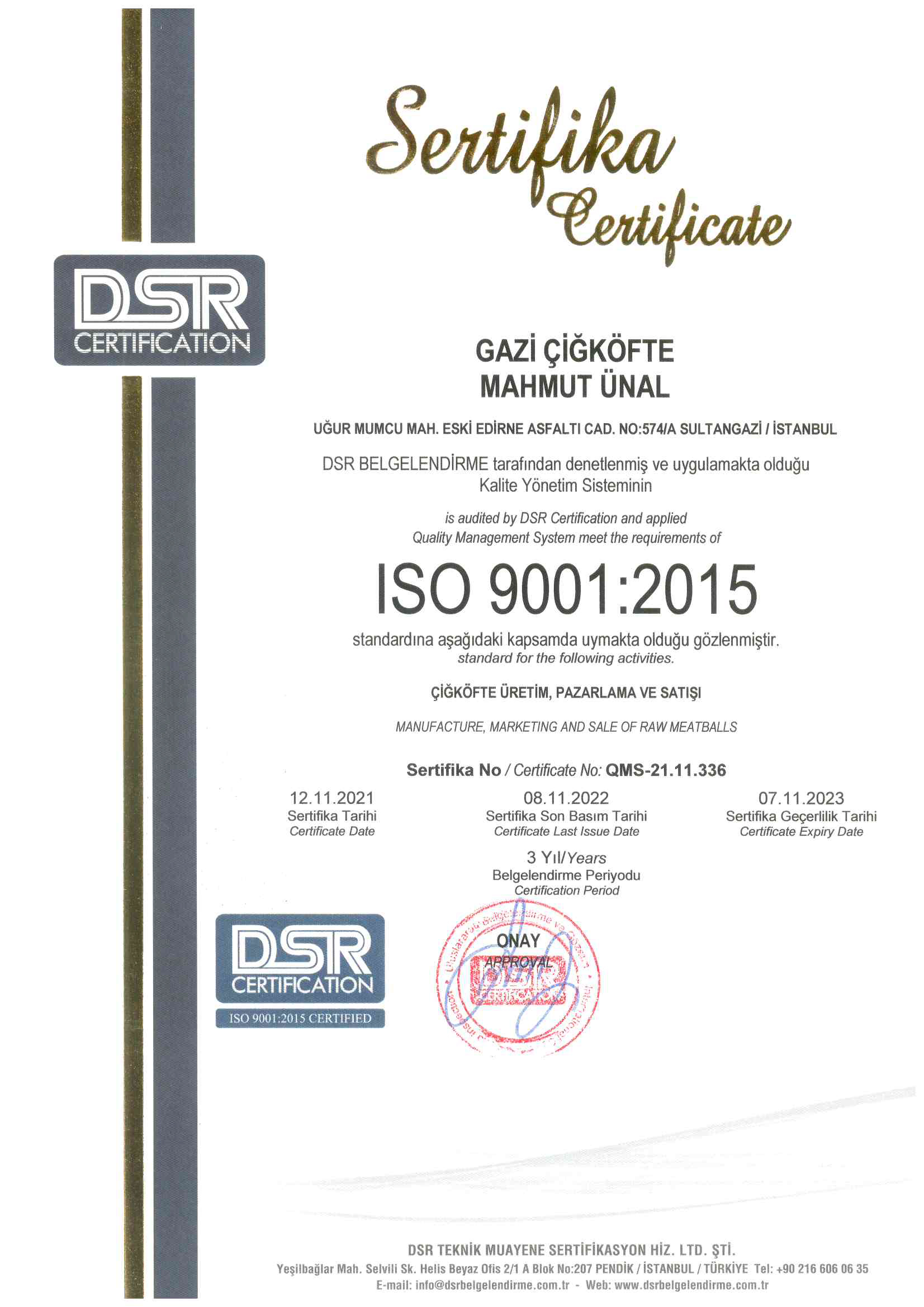 Ürünlerimiz, üstün kalite ve hijyen anlayışıyla, tamamı helal ürünlerden üretilmekte olup, Gıda Güvenliği Yönetim Sistemi ve Helal Sertifikalarına sahiptir. Üretimhanemiz, sürekli denetimden geçmekte olup, gıda analizi ve laboratuvar analizleri yapılmaktadır. Öncelikli amacımız "Sağlık" ve "Hijyen" olduğu için en hassas olduğumuz noktalardan birisi üretim aşamamızdır.