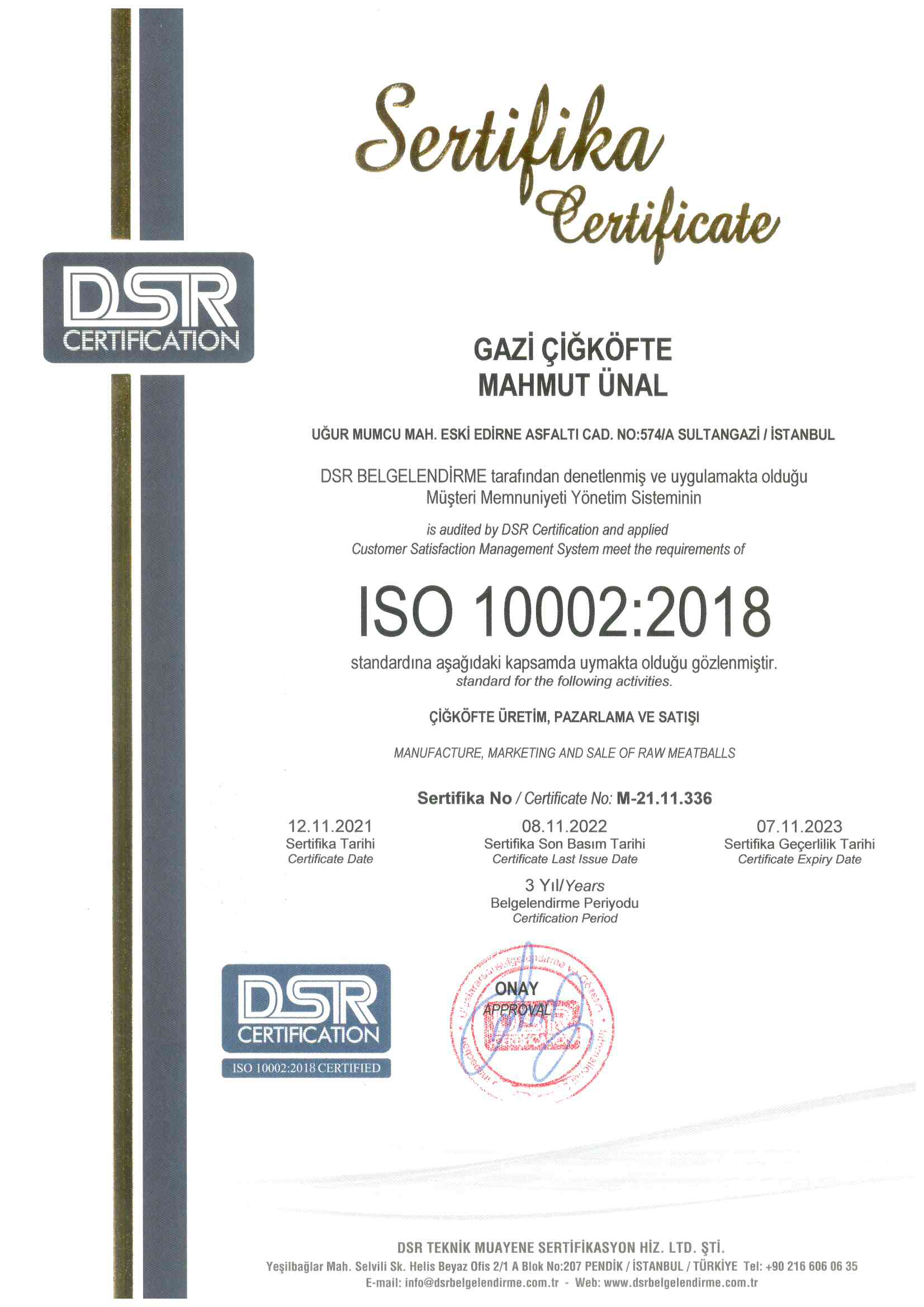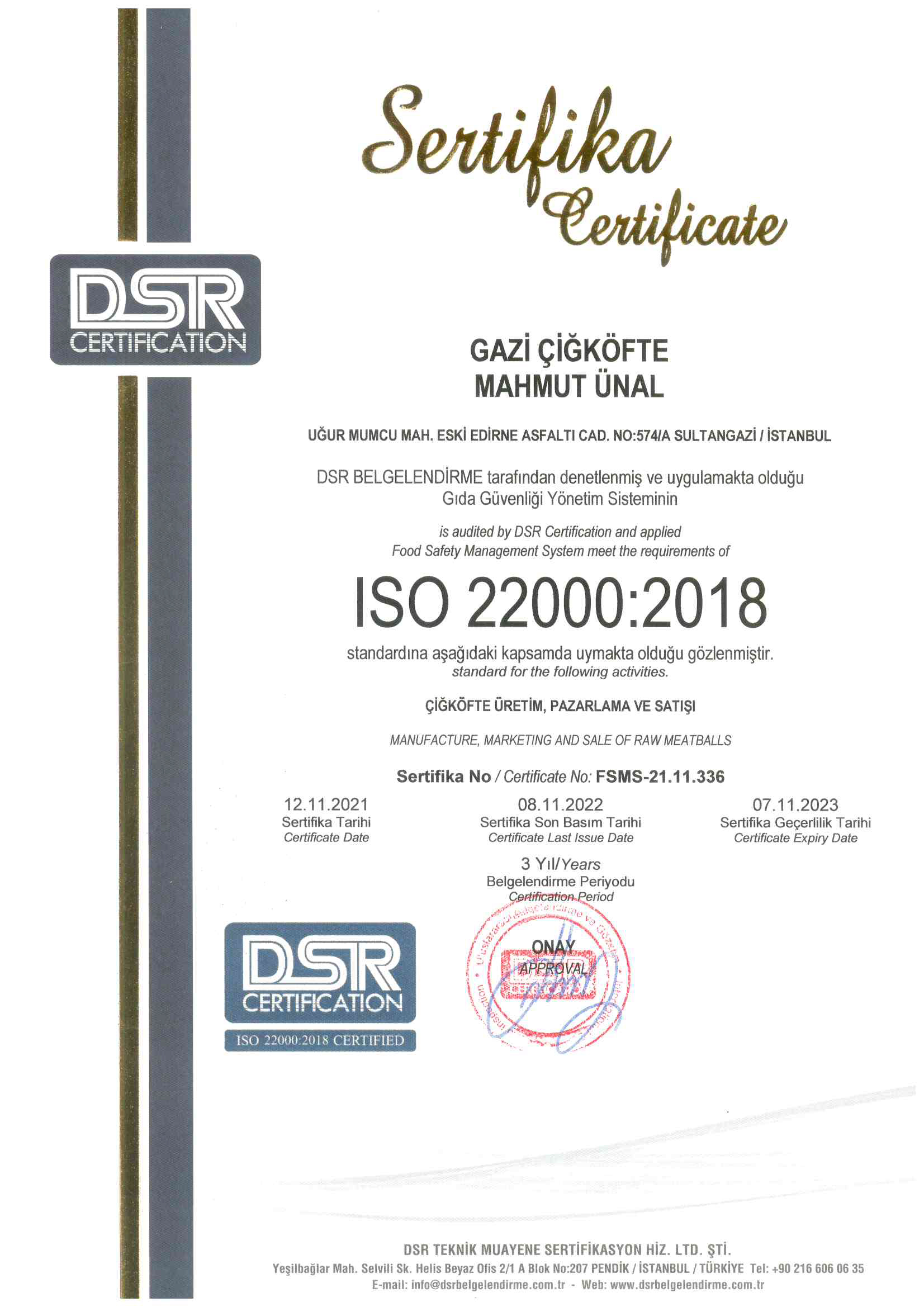 Ürünlerimiz, üstün kalite ve hijyen anlayışıyla, tamamı helal ürünlerden üretilmekte olup, Gıda Güvenliği Yönetim Sistemi ve Helal Sertifikalarına sahiptir. Üretimhanemiz, sürekli denetimden geçmekte olup, gıda analizi ve laboratuvar analizleri yapılmaktadır. Öncelikli amacımız "Sağlık" ve "Hijyen" olduğu için en hassas olduğumuz noktalardan birisi üretim aşamamızdır.
